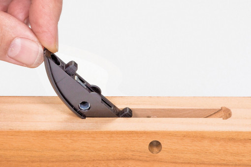 Clamex P-14 ist ein lösbarer Verbindungsbeschlag auf Basis der P-System Verankerung und wird über einen Hebel verbunden. Die formschlüssige P-System Verankerung erlaubt eine sekundenschnelle, kraftvolle Verankerung im Werkstück ohne Werkzeuge. Clamex P verzichtet auf Klebstoff oder Schrauben und bringt unzählige Vorteile im Herstellungsprozess und in der Differenzierung zu Möbelstandards. So können beispielsweise Möbel mit Gehrungen zerlegbar oder fest verbunden werden. Die kleinen 6mm Bedienöffnungen für den Sechskantschlüssel zeichnen den Möbelbeschlag aus und heben Clamex P vom Möbelstandard ab.