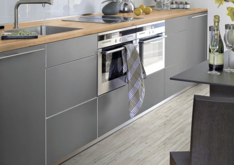 Arbeitsplatte aus einer Holzspanplatte Typ P2, die Dekorseite ist mit einem HPL verklebt, die Rückseite mit wasserabweisendem Gegenzug. Die Oberfläche des Schichtstoffs ist kratzfest, lebensmittelecht, wasserfest und pflegeleicht. Als Holzwerkstoff sind unsere Arbeitsplatten leicht zu verarbeiten und einzubauen.