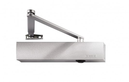 Der Geze Gestängetürschließer wird an der Oberseite des Türblatts befestigt, auch eine Kopfmontage ist möglich. Die Größe 1-6 ist für Flügelbreiten von bis zu 1400 mm geeignet, die Größe 5-7 bis 1600 mm. Der Schließer kann ohne Umbau für rechts und links angeschlagene Türen verwendet werden. Schließkraft und Endschlag sind einfach von vorn einzustellen und durch optische Anzeige ablesbar. Der Gestängetürschließer ist wahlweise in Silber oder Weiß verfügbar.
