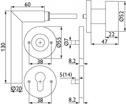 • Drücker in Gehrungs-Form